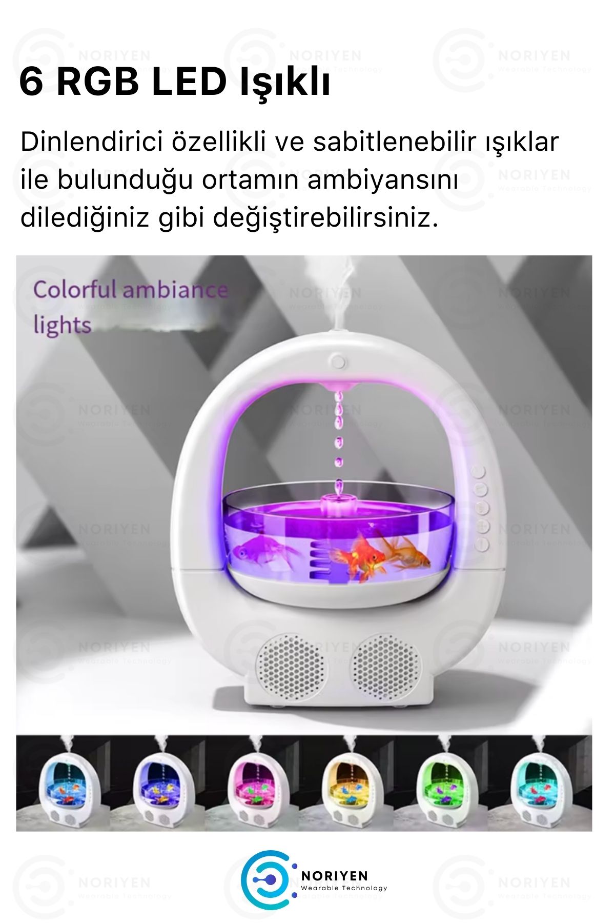 Noriyen kalitesiyle Yeni Nesil Özel Tasarım Hava Nemlendirici - Aroma Difüzör ; Akvaryumlu - Balık Tanklı ; Ultra Sessiz Premium Model ; Gece Işığı Modu ; Aroma Terapi Difüzör ; Otomatik Kapanma Özellikli ( 1 - 3 - 6 Saate Ayarlanabilir ) ; Priz ile çalışır - Şarjlı değildir. ;