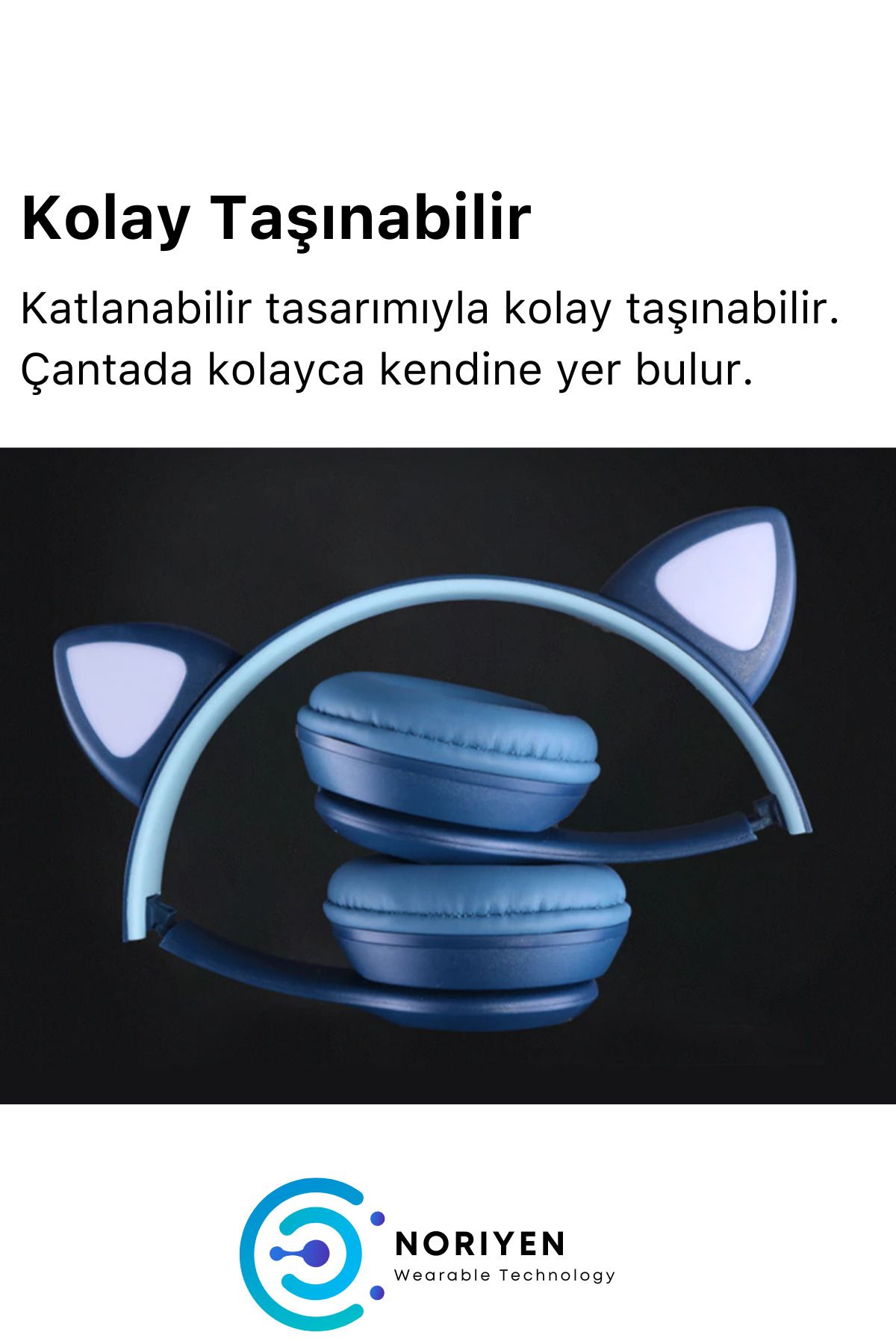 Çocuklar için sevimli kedi kablosuz bluetooth kulaklık ; Yüksek kaliteli ses ile müzik keyfi ; Telefon ve ses kaynaklarına 5.0 bluetooth ile bağlanır.; ; Müziğin ritmine göre kulaklarındaki ışıklar hareket eder.; Işık manuel olarak da kontrol edilebilir.; ; Tüm telefon, bilgisayar ve dijital ses cihazlarına uyumludur.; ; Boynuz çapı: 40mm ; Dinleme Süresi: 24 Saat / Şarj Süresi: 2.5 Saat ; Boyutları: 18 x 16 x 8cm ; Paket İçeriği: 1 x Bluetooth Kulaklık + 1 x Şarj Kablosu ;