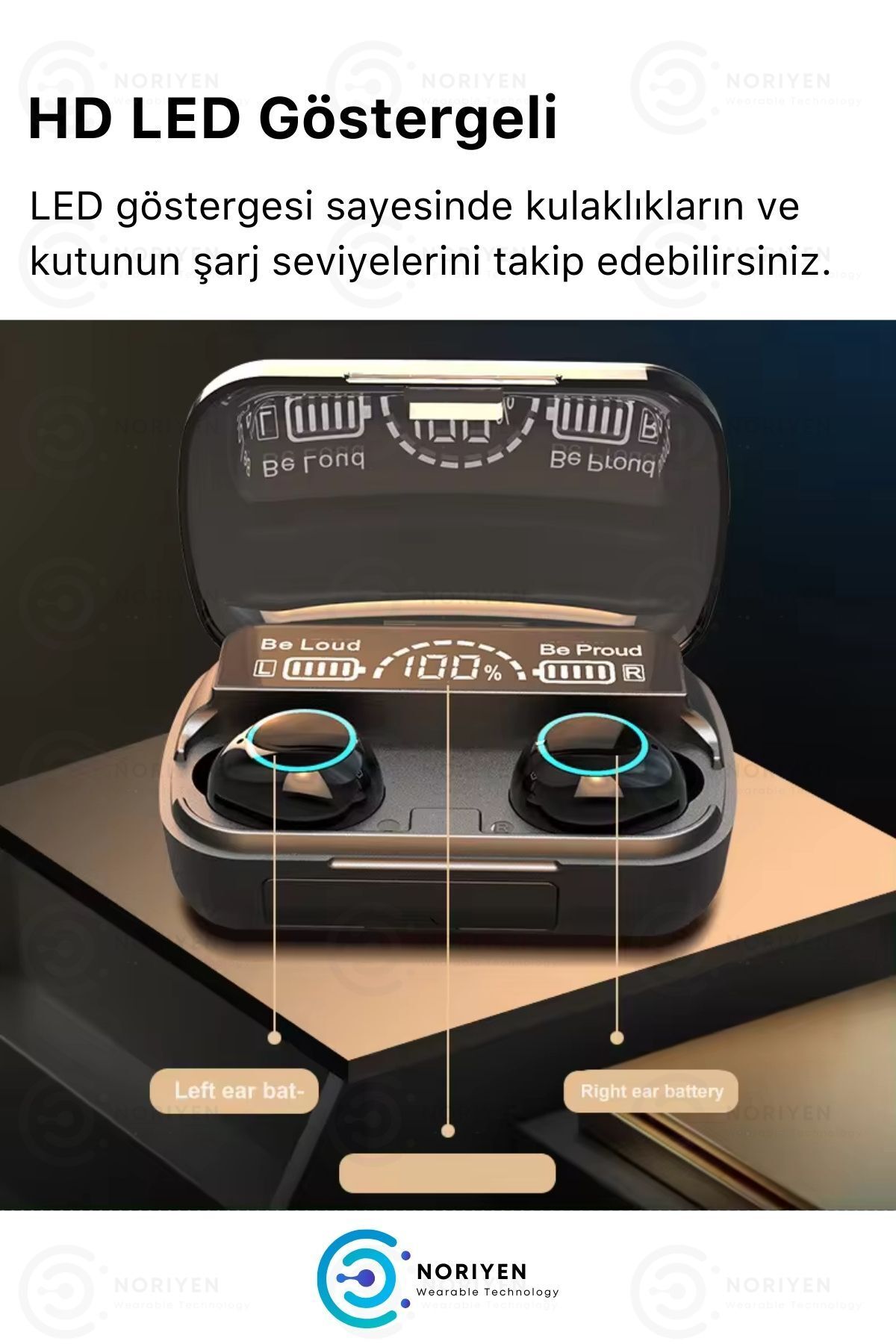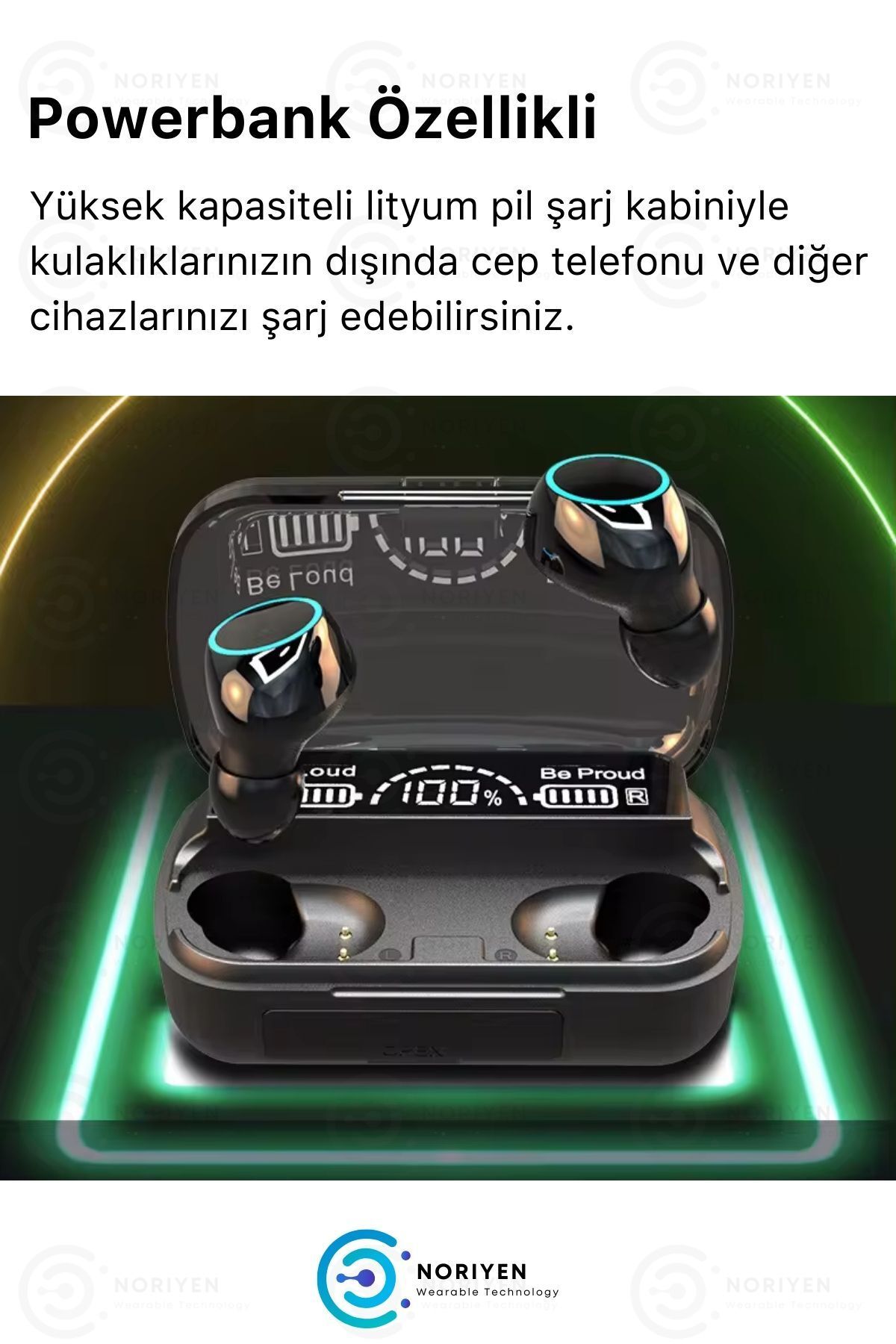 Noriyen kalitesiyle Yeni Nesil M30 Bluetooth Kulaklık ; Kutu İçeriği: 1 x Şarj Kutusu / 2 x Kulaklık / 1 x Şarj Kablosu ; Otomatik Bağlantı ; HD - Hi-Fi Ses Ayrıcalığı ; Şarj Kutusu ayrıca powerbank olarak kullanılabilmektedir ; Şarj kutusuyla telefonunuzu da şarj edebilirsiniz. Tüm cihazlarınızı şarj edebilirsiniz. ; Ultra Hassas Dokunmatik özelliğiyle kontrol parmaklarınızın ucunda. ; Oyuncular için Özel : Ses Gecikmesiz Tam Senkronizasyon ; Aktif Gürültü Engelleyici Özellik ; Dış ortamdan gelen gürültüyü tamamen engeller. Eşsiz bir oyun deneyimi sunar. ; LED Göstergeli : Şarjı sürekli takip edebilirsiniz. ; Tüm IOS ve Android telefonlara uyumludur. ; Bluetooth 5.2 bağlantısıyla yüksek çözünürlüklü Ultra HD Ses Kalitesi ; Ergonomik Tasarım ile kulaklarınızla tam uyumlu ; Dokunmatik - Oynat + duraklat ; Otomatik bağlantı özelliği ile cihazınıza bir defa bağlandıktan sonra kapsama alanına her girdiğinde otomatik bağlanır. ; Mikrofonlu - Kaliteli ses ile telefon görüşmesi ; Suya Dayanıklı Model ; Portatif şarj istasyonunun kapağını açtığınız gibi anında telefonunuza bağlanır. Uzun süre bağlanmasını beklemezsiniz. ;