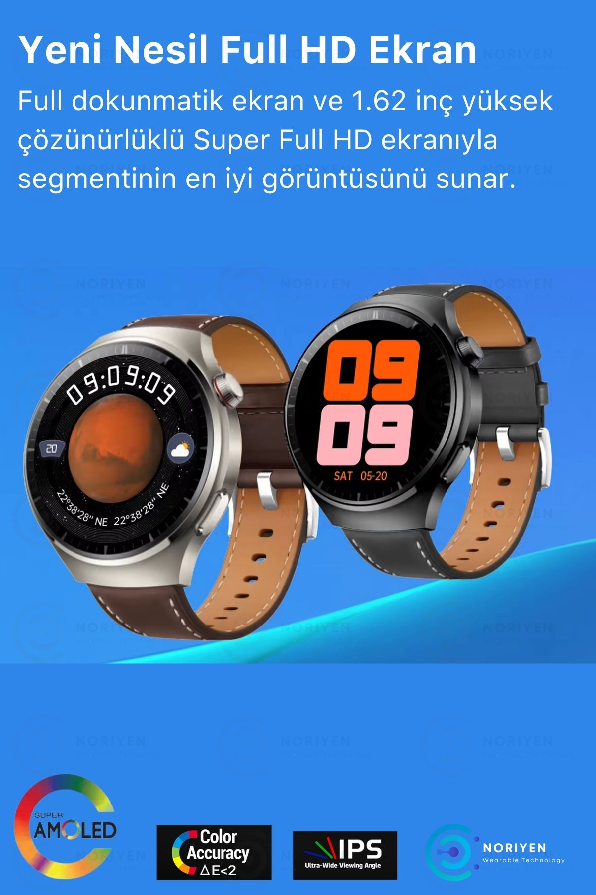 Yeni Nesil Premium Serisi S20 Max Akıllı Saat ; En Yeni Teknoloji ve Şıklık Bir Arada ; Yüksek Çözünürlüklü Büyük AMOLED HD Ekran ; Yuvarlak Ekran ; 24 Ay Garantili ; Türkçe Menülü ; Kolay Kurulum & Kullanım ; Siparişiniz Orijinal kutusunda gönderilmektedir.; ; Kutu İçeriği: 1 Adet Akıllı Saat - 1 Adet Metal Kordon - 1 Adet Deri Kordon - 1 Adet Wireless Şarj Aleti - 1 Adet Kullanım Kılavuzu ; Paslanmaz Çelik Saat ve Kordon ; 1.62 İnç Yeni Nesil HD Ekran ; 5.0 Bluetooth ile yüksek kaliteli çağrı cevaplama ve arama yapma özelliği ; NFC & Siri Ses Asistanı Destekli ; Wireless Kablosuz Şarjlı ; Uzun Şarj Tutma Kapasitesi : 4 Gün Çalışma / 10 Gün Bekleme Süresi ; Iphone Ios ve Android - Tüm Telefonlara Uyumlu ; Whatsapp - SMS dahil telefon bildirimlerinizi anında alırsınız.; ; Saat üzerinden bluetooth üzerinden telefon görüşmesi yapılabilmektedir.; Gelen aramayı cevaplayabilir ve saat üzerinden telefon görüşmesi yapabilirsiniz.; ; Ses Asistanı Destekli ; Sağlık İzleme: Nabız ölçer, uyku izleyici, kan basıncı, tansiyon, ekg ve vücut sıcaklığı ölçer ; Adımlarınızı hesaplayarak yaktığınız kalori miktarını ve kalp ritminizi paylaşır.; ; Spor Modları: Kapalı koşu, bisiklet, yüzme, bisiklet, yürüyüş, basketbol, masa tenisi, tırmanma, yoga vb.; ; Akıllı hatırlatıcılar: Su içme ve uzun süre hareketsizlik hatırlatmaları yapar ; 5.0 Bluetooth bağlantı ile yüksek kaliteli müzik keyfi ; Suya dayanıklı modeli ile günlük kullanımda basınçlı sıcak su, deniz ve havuz dışında su geçirmez.; ; Uzaktan kamera: Bilediğinizi sallayarak uzaktan telefonunuzla fotoğraf çekebilirsiniz.; ; Türkçe dahil çoklu dil seçeneği ; Diğer özellikler: Saatimi bul ve telefonumu bul özelliği, suya ve toza dayanıklı çerçeve, bölünebilir ekran, uyandırma, hesap makinesi, alarm, kronometre, hava durumu, kordon değişimi yapılabilir ; En çok tercih edilen Orijinal Noriyen Garantili Akıllı saatler için Noriyen mağazasını ziyaret edebilirsiniz.