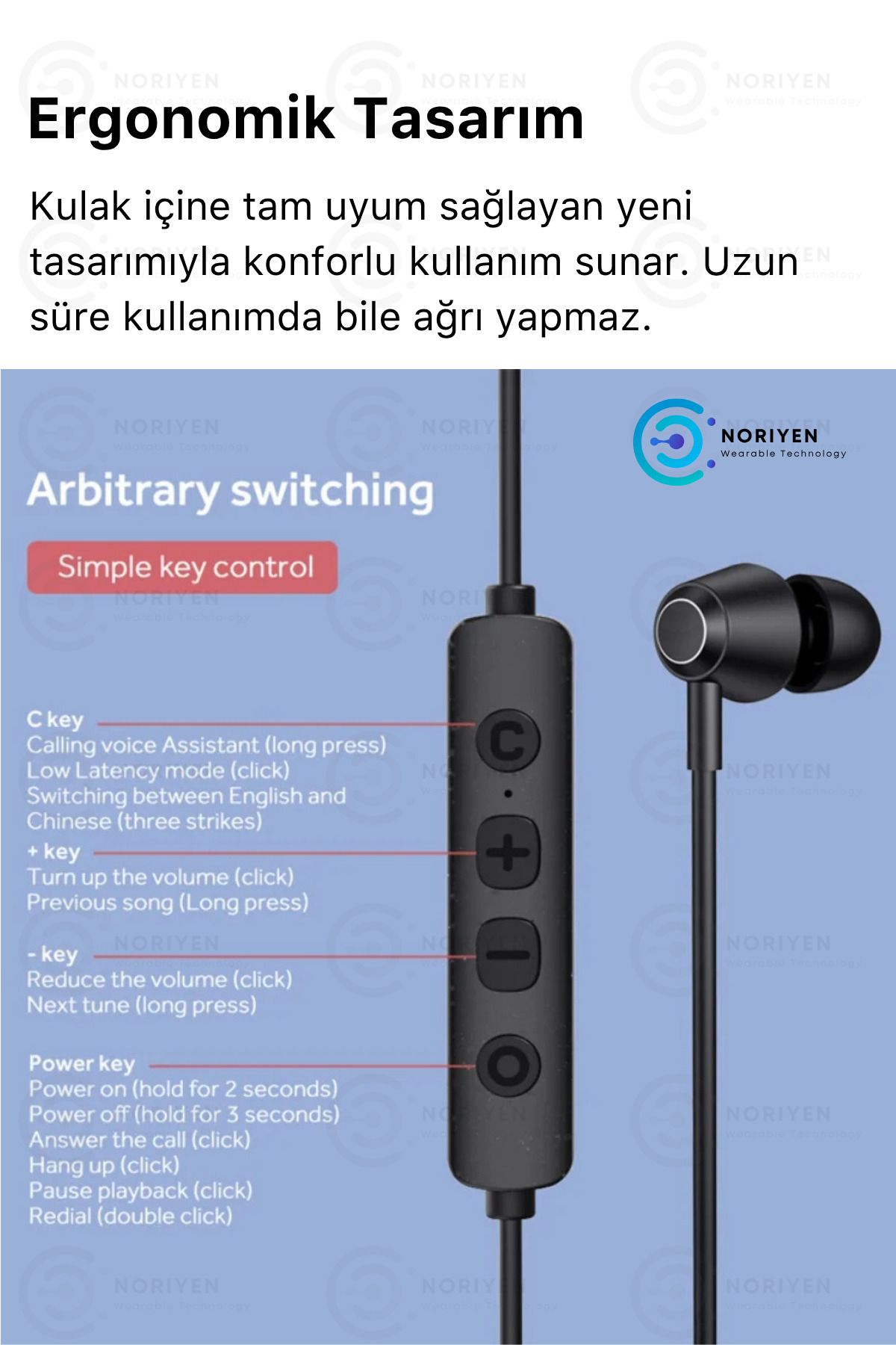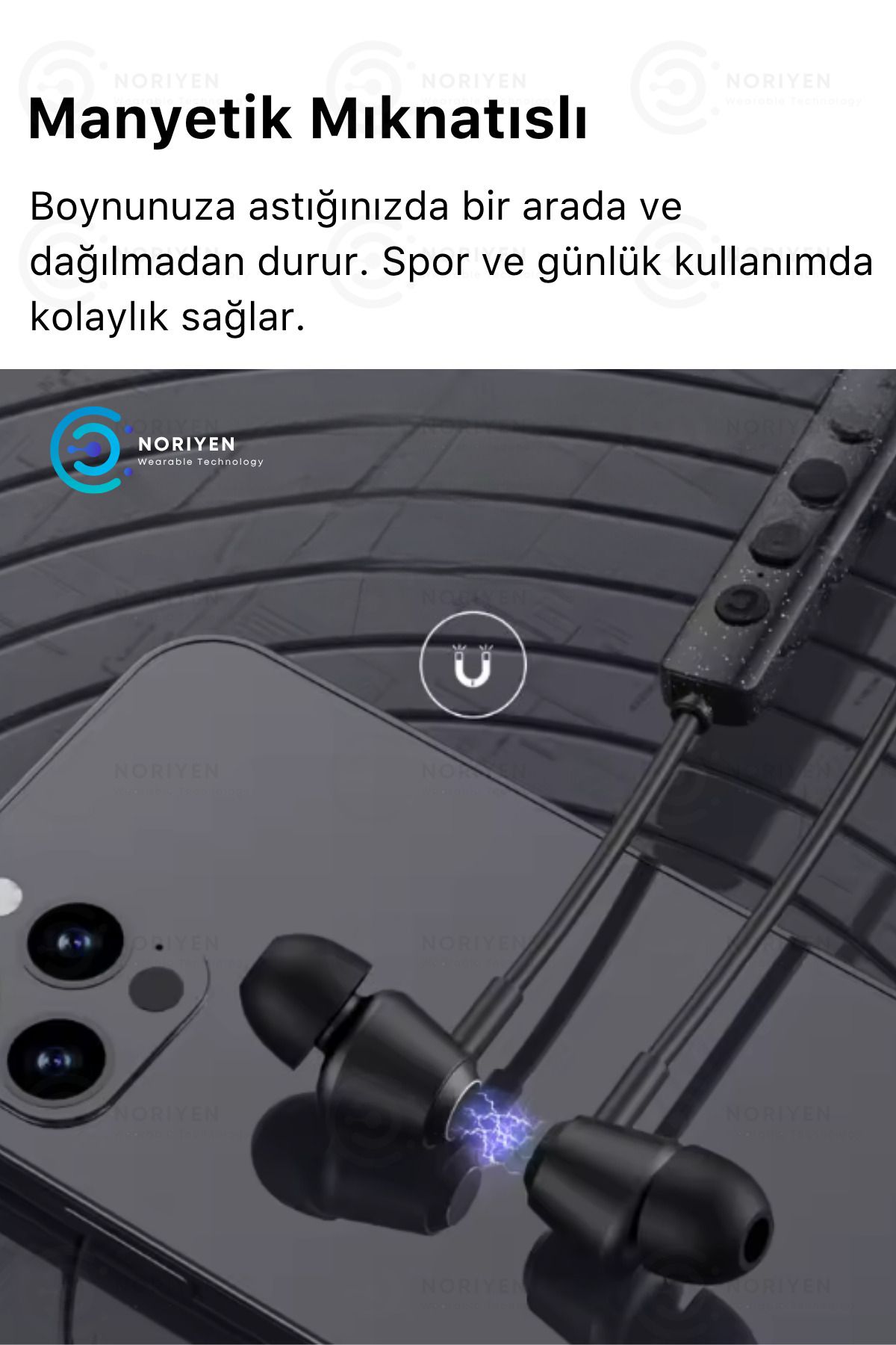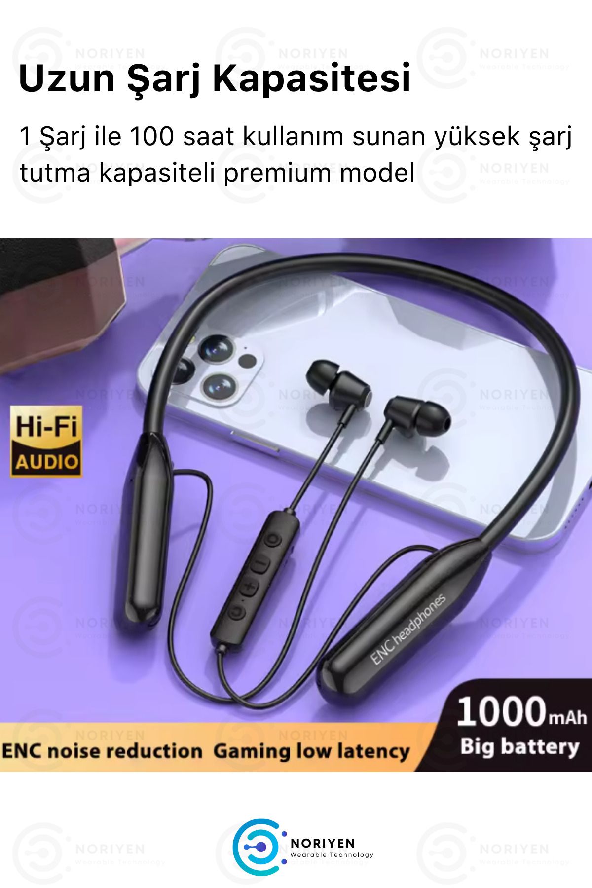 Noriyen kalitesiyle Yeni Nesil Boyun Bantlı 5.3 Bluetooth Kulaklık ; Full HD Stereo Ses ; Su Geçirmez ; Ultra Hassas Dokunmatik özelliğiyle kontrol parmaklarınızın ucunda.; ; Spor - Oyun ve Ofis Modlu Özel Seri ; Konforlu Kullanım ; Mikrofonlu ; Çift Cihaza Bağlanabilme ; Spor, Koşu, Fitness için çok tercih edilen manyetik mıknatıslı model ; Ofis çalışmasında boyundan askılı olması sebebiyle handsfree kullanım avantajı sunar.; ; Ses Gecikmesiz Tam Senkronizasyon ; Aktif Gürültü Engelleyici Özellik ; Dış ortamdan gelen gürültüyü tamamen engeller.; ; LED Göstergeli : Şarjı sürekli takip edebilirsiniz.; ; Tüm IOS ve Android telefonlara uyumludur.; ; 150 Saate kadar kesintisiz müzik deneyimi sunar.; ; Ergonomik Tasarım ile kulaklarınızla tam uyumlu ; Dokunmatik - Oynat + duraklat ; Otomatik bağlantı özelliği ile cihazınıza bir defa bağlandıktan sonra kapsama alanına her girdiğinde otomatik bağlanır.; ; Mikrofonlu - Kaliteli ses ile telefon görüşmesi ; Portatif şarj istasyonunun kapağını açtığınız gibi anında telefonunuza bağlanır.; Uzun süre bağlanmasını beklemezsiniz.