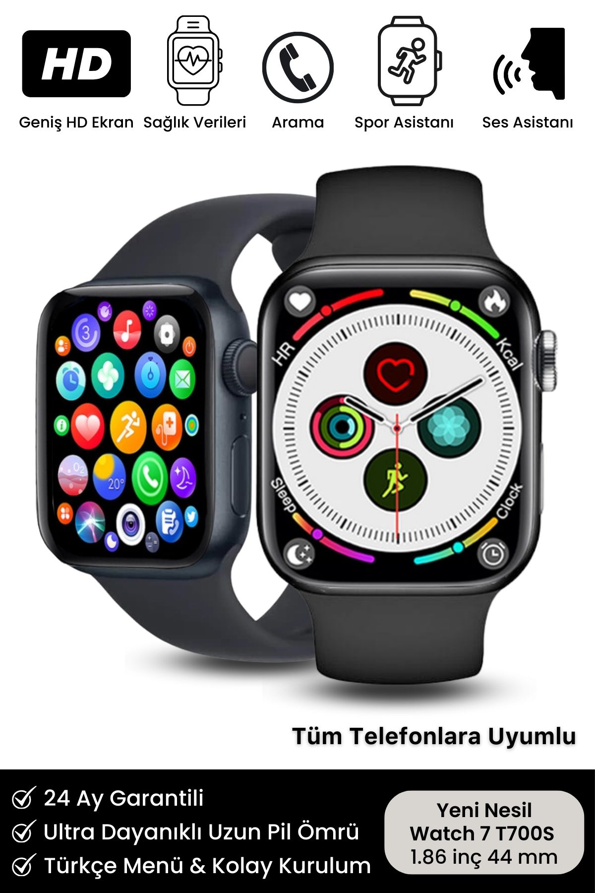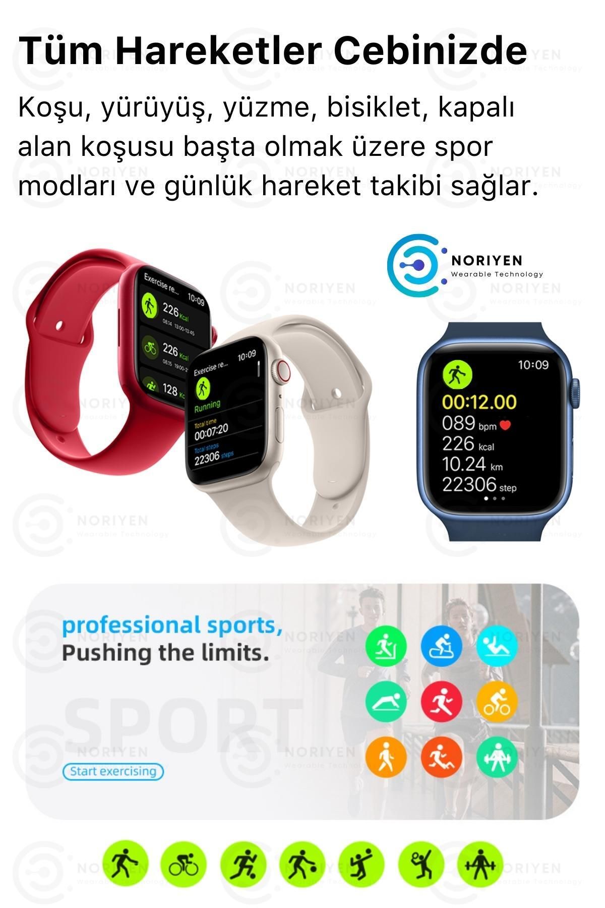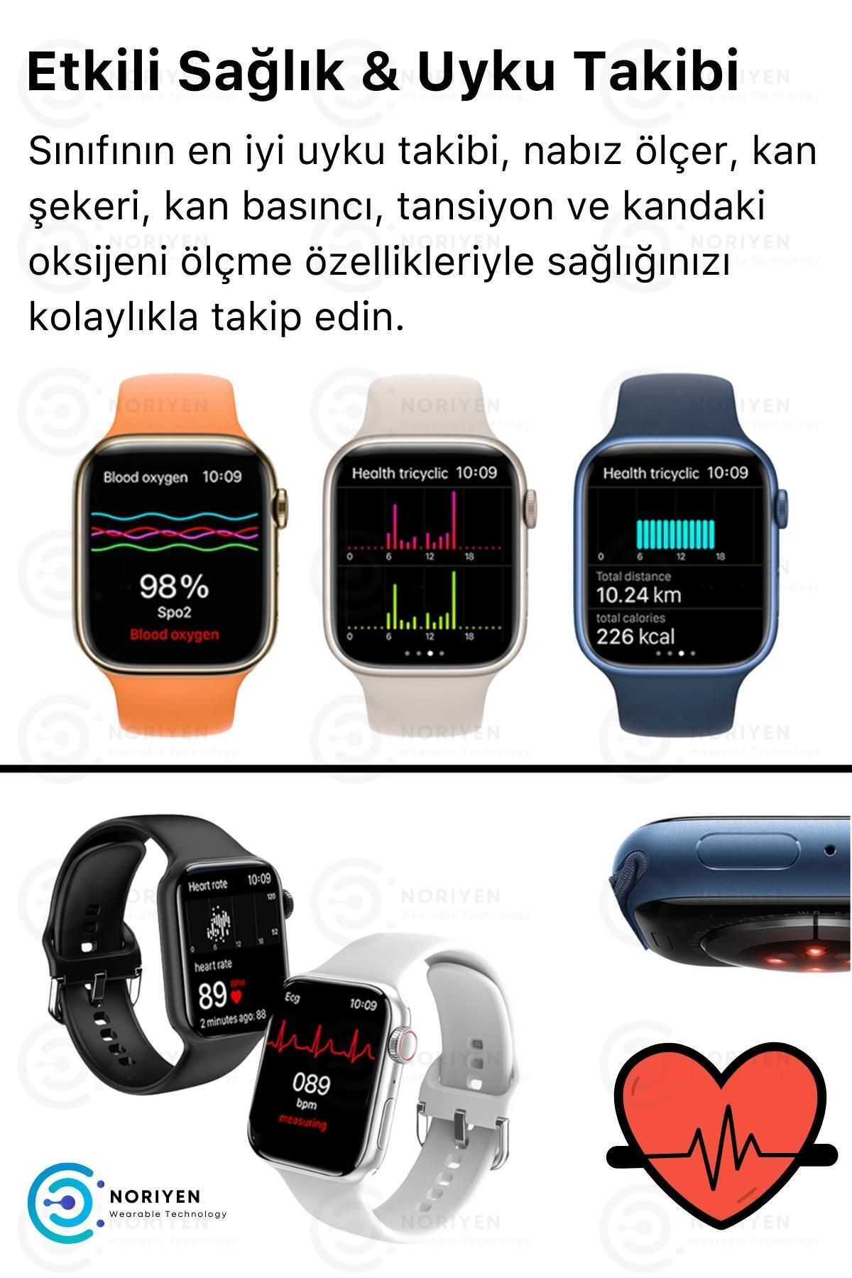 Orijinal Watch Yeni Nesil Çift Tuşlu 1.86 İnç HD Geniş Ekran Akıllı Saat ; Türkçe Menülü : Kolay Kurulum & Kullanım ; 24 Ay Garantili ; Iphone Ios ve Android - Tüm Telefonlara Uyumlu ; Siparişiniz Orijinal kutusunda gönderilmektedir; ; Kutu İçeriği: Akıllı saat + Şarj Kablosu + Türkçe Kullanım Kılavuzu ; 5.2 Bluetooth ile yüksek kaliteli çağrı cevaplama ve arama yapma özelliği ; 1.86 İnç Yüksek Çözünürlüklü HD Ekran ; Uzun şarj tutma kapasitesi ; Sağlık İzleme: Nabız ölçer, uyku izleyici, kan basıncı, tansiyon, ekg ve vücut sıcaklığı ölçer ; Adımlarınızı hesaplayarak yaktığınız kalori miktarını ve kalp ritminizi paylaşır.; ; Spor Modları: Kapalı koşu, bisiklet, yüzme, bisiklet, yürüyüş, basketbol, masa tenisi, tırmanma, yoga ; Akıllı hatırlatıcılar: Su içme ve uzun süre hareketsizlik hatırlatmaları yapar ; WearFIT PRO uygulaması üzerinden sınırsız kadran ve ekran değişimi.; ; Tüm bildirim ve mesajlar anında akıllı saatinizde ; Bluetooth bağlantı ile yüksek kaliteli müzik keyfi ; Uzaktan fotoğraf çekme özelliği ; Suya dayanıklı modeli ile günlük kullanımda ; Basınçlı sıcak su, deniz ve havuz dışında su geçirmez.; ; Dokunmatik ekran + aktif yan tuşlu ; Uzaktan kamera: Bilediğinizi sallayarak uzaktan telefonunuzla fotoğraf çekebilirsiniz.; ; Telefonunuzda Wearfit Pro programını Apple Store ya da Google üzerinden hızlıca yükleyip kolay kurulum yapabilirsiniz.; ; Türkçe dahil çoklu dil seçeneği ; Diğer özellikler: Saatimi bul ve telefonumu bul özelliği, suya ve toza dayanıklı çerçeve, bölünebilir ekran, uyandırma, hesap makinesi, alarm, kronometre, hava durumu, kordon değişimi yapılabilir ; En çok tercih edilen Orijinal Noriyen Garantili Akıllı saatler için Noriyen mağazasını ziyaret edebilirsiniz.;