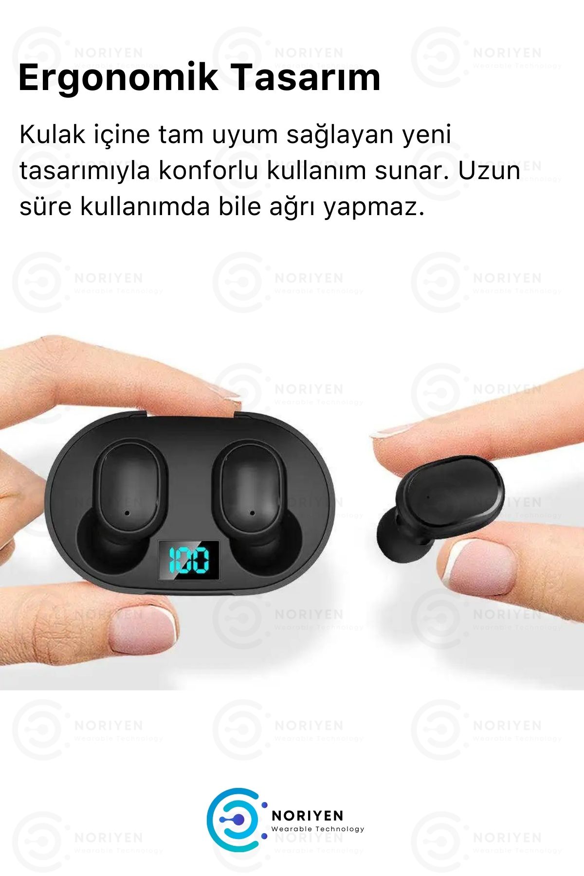 Noriyen kalitesiyle Yeni Nesil E6S Dots Bluetooth Kulaklık ; Kutu İçeriği: 1 x Powerbank Özellikli Kutusu / 2 x Kulaklık / 1 x Şarj Kablosu / Yedek Kulak İçi Silikonları ; Full HD + Ekstra Bass ile Eşsiz Müzik Deneyimi ; Oyuncular için Özel : Ses Gecikmesiz Senkronizasyon ; Aktif Gürültü Engelleyici Özellik : Dış ortamdan gelen gürültüyü tamamen engeller. Eşsiz bir oyun deneyimi sunar. ; LED Göstergeli : Şarjı sürekli takip edebilirsiniz. ; Şarj Kutusu ayrıca powerbank olarak kullanılabilmektedir. Şarj kutusuyla telefonunuzu da şarj edebilirsiniz. ; Tüm IOS ve Android telefonlara uyumludur. ; Bluetooth 5.0 bağlantısıyla yüksek çözünürlüklü Ultra HD Ses Kalitesi ; Ergonomik Tasarım ile kulaklarınızla tam uyumlu ; Dokunmatik - Oynat + duraklat ; Kutudan 4 Sefer Şarj Edilebilmektedir. ; Kutunun Şarj Olma Süresi : 90 Dk; Otomatik bağlantı özelliği ile cihazınıza bir defa bağlandıktan sonra kapsama alanına her girdiğinde otomatik bağlanır. ; Çift Mikrofonlu - Kaliteli ses ile telefon görüşmesi ; IPX4 Su Geçirmezlik ; Portatif şarj istasyonunun kapağını açtığınız gibi anında telefonunuza bağlanır. Uzun süre bağlanmasını beklemezsiniz. ;