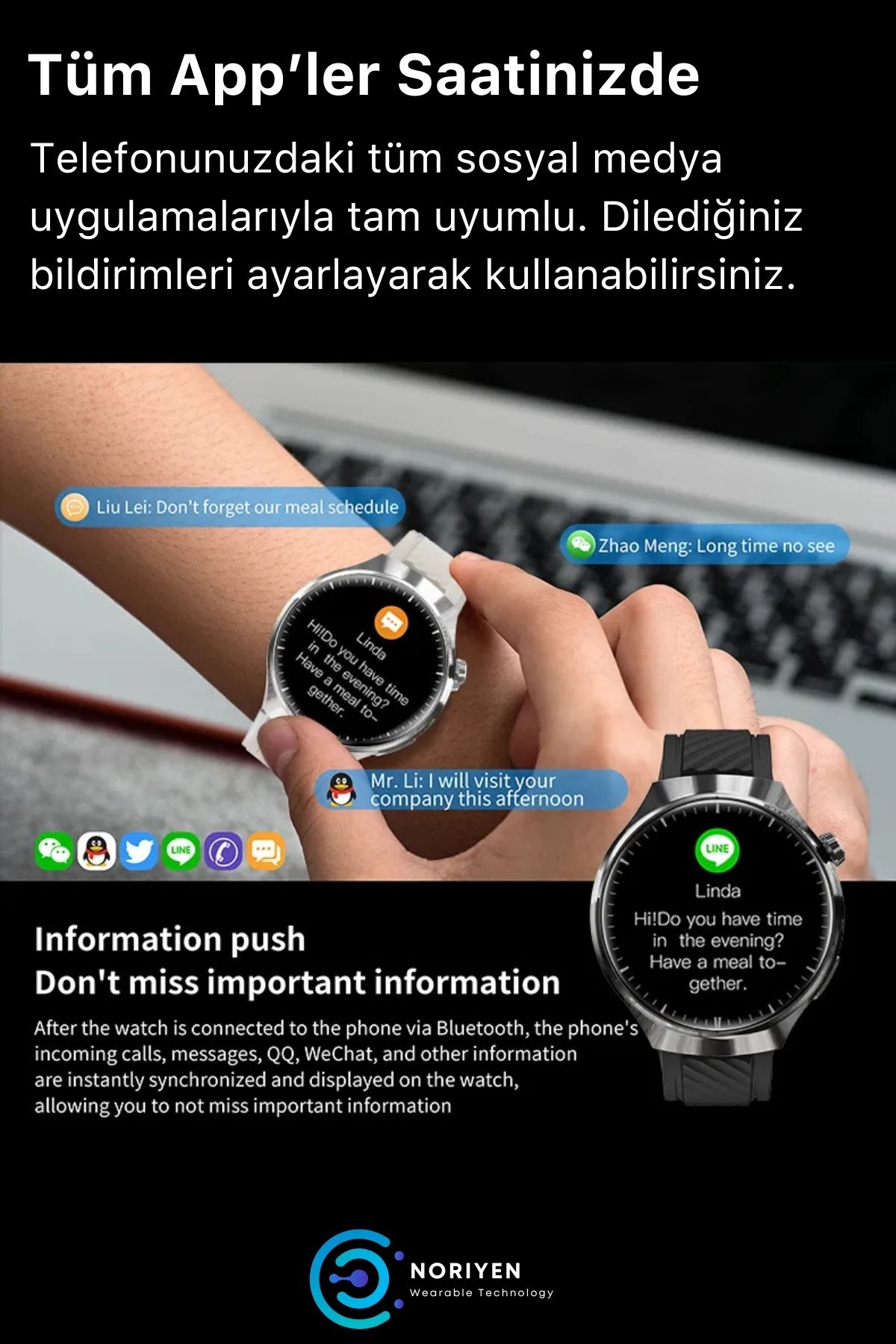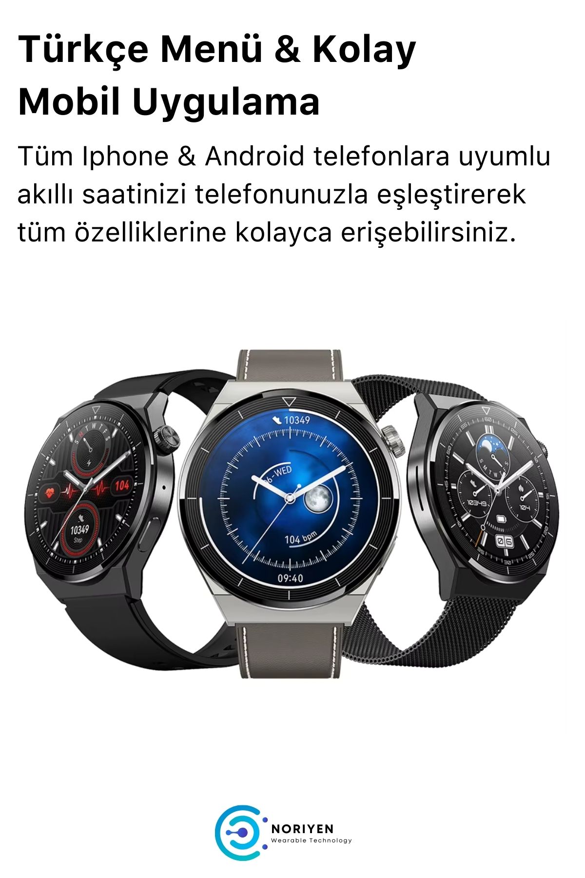 Yeni Nesil Watch 4 Pro Suit Akıllı Saat ; 7 Kordonlu Özel Seri ; En Yeni Teknoloji ve Şıklık Bir Arada ; Yüksek Çözünürlüklü IPS HD 1.50 inç Ekran ; 24 Ay Garantili ; Türkçe Menülü ; Kolay Kurulum & Kullanım ; Siparişiniz Orijinal kutusunda gönderilmektedir.; ; Kutu İçeriği: 1 x Akıllı Saat - 7 x Kordon - 1 x Kullanım Kılavuzu - 1 x Kablosuz Şarj Cihazı ; Yeni Nesil HD Ekran ; Bluetooth ile yüksek kaliteli çağrı cevaplama ve arama yapma özelliği ; Uzun Şarj Tutma Kapasitesi ; Iphone Ios ve Android - Tüm Telefonlara Uyumlu ; Tüm telefon bildirimlerinizi anında alırsınız.; ; Saat üzerinden bluetooth üzerinden telefon görüşmesi yapılabilmektedir.; ; Gelen aramayı cevaplayabilir ve saat üzerinden telefon görüşmesi yapabilirsiniz.; ; Sağlık İzleme: Nabız ölçer, uyku izleyici, kan basıncı, tansiyon, ekg ve vücut sıcaklığı ölçer ; Adımlarınızı hesaplayarak yaktığınız kalori miktarını ve kalp ritminizi paylaşır.; ; Spor Modları: Kapalı koşu, bisiklet, yüzme, bisiklet, yürüyüş, basketbol, masa tenisi, tırmanma, yoga vb.; ; Akıllı hatırlatıcılar: Su içme ve uzun süre hareketsizlik hatırlatmaları yapar ; Bluetooth bağlantı ile yüksek kaliteli müzik keyfi ; Suya dayanıklı modeli ile günlük kullanımda basınçlı sıcak su, deniz ve havuz dışında su geçirmez.; ; Uzaktan kamera: Bilediğinizi sallayarak uzaktan telefonunuzla fotoğraf çekebilirsiniz.; ; Türkçe dahil çoklu dil seçeneği ; Diğer özellikler:Saatimi bul ve telefonumu bul özelliği, suya ve toza dayanıklı çerçeve, bölünebilir ekran, uyandırma, hesap makinesi, alarm, kronometre, hava durumu, kordon değişimi yapılabilir ; En çok tercih edilen Orijinal Noriyen Garantili Akıllı saatler için Noriyen mağazasını ziyaret edebilirsiniz.